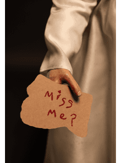 The Doll comes fully clothed and Annabelle is holding her Miss Me parchment paper in her right hand.