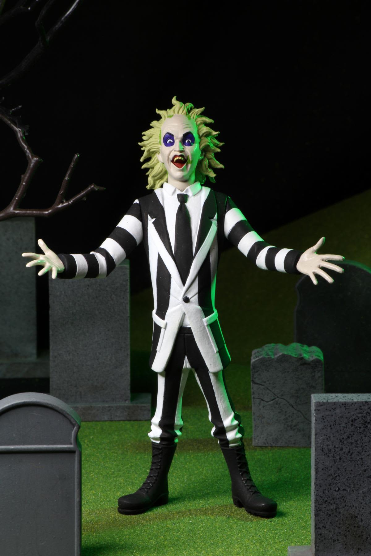 Bring the fun of Saturday morning cartoons to your horror collection with the adorable little creeps of Toony Terrors! Beetlejuice stands approximately 6 inches tall and includes knife accessory. Collect them all and make every day Toony Terror Time! Comes in blister card packaging with bonus cutout backdrop.