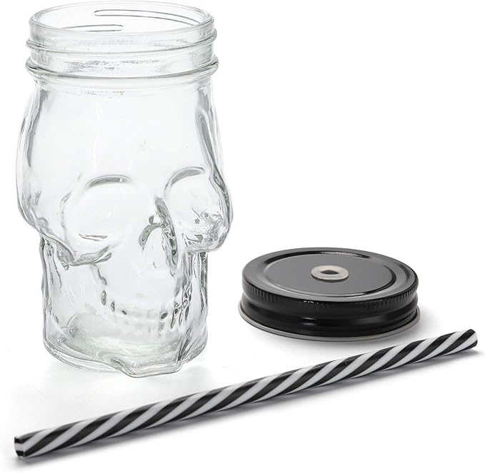 Skull Mason Drinking Mugs Tumbler Cup with Straws Old Fashioned Jar Drinking Glasses