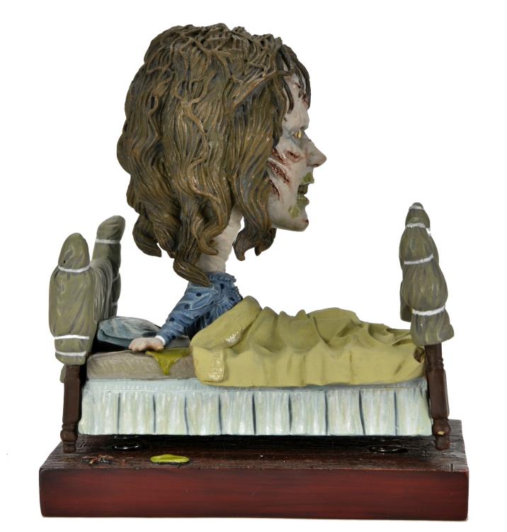 A cornerstone of the horror movie genre, The Exorcist has terrified generations of viewers. The 12-year-old Regan has been possessed by the devil, and only an exorcist can save her! This addition to the popular Head Knocker line brings you Regan, cast in resin and then hand painted for incredible detail. Regan stands 5.5 inches tall with bobbling bed and bobbling head and comes in collectible matte packaging with spot gloss finish.