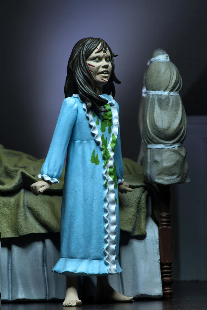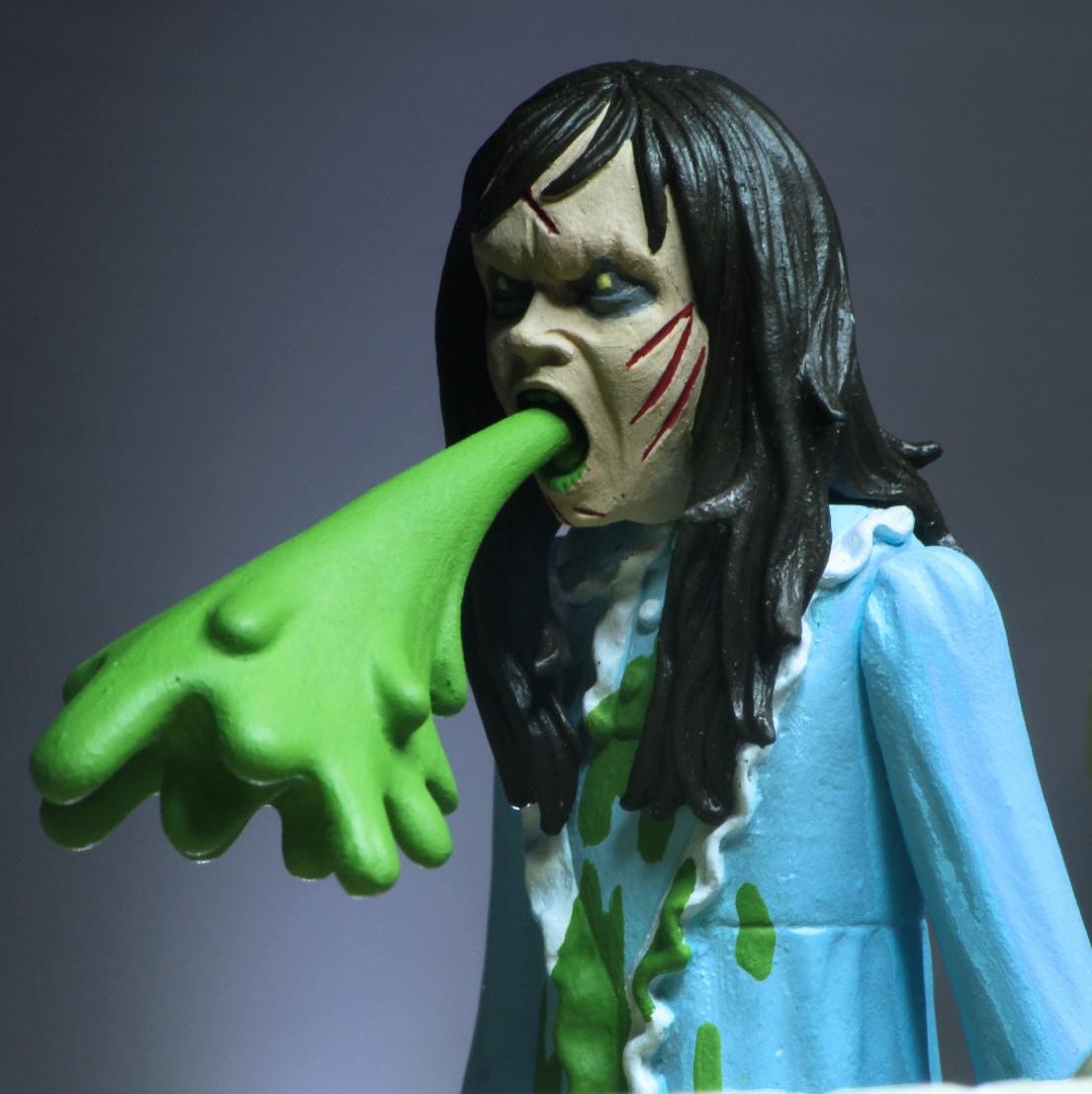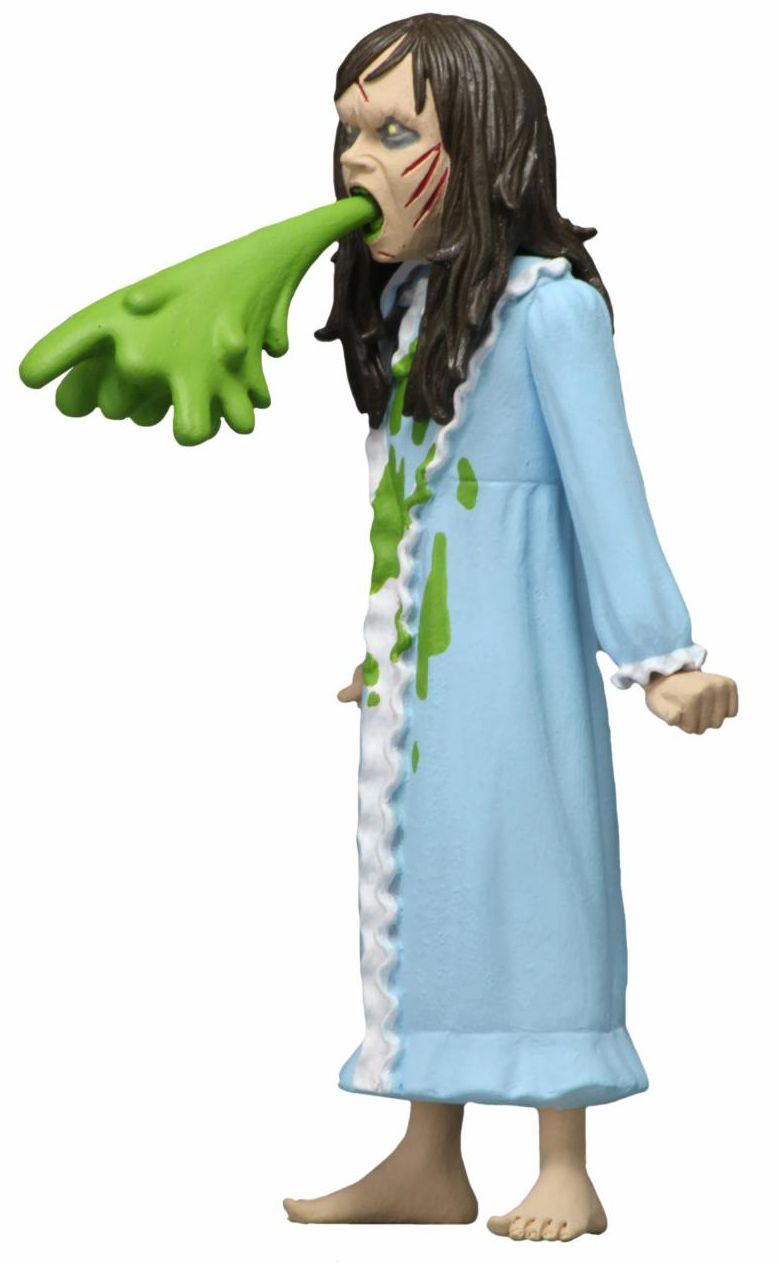 Series 4 of the adorably creepy Toony Terrors line brings more stylized horror icons into the mix! The Regan (The Exorcist) action figure stands approximately 5 inches tall (in scale with 6 figures) and includes swappable heads and vomit attachment. The blister card packaging has a bonus cutout backdrop.