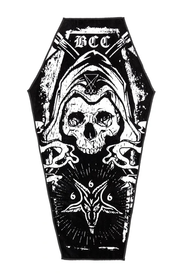 Forget everything you thought you knew about beach towels. At Nightmare Toys, we don't carry your ordinary, uninspiring beach towels. Why fit in when you can stand out, right? With our spooktastic horror beach towels, you're guaranteed to make a splash at the beach or your next pool party. Who says that beach towels have to rectangular? If, like us, you live and breathe horror, you will love our giant coffin-shaped horror beach towels that are oh-so-soft! When the weather gets cooler, your horror beach towel will look fabulous draped on your wall. Something about two birds, one stone?