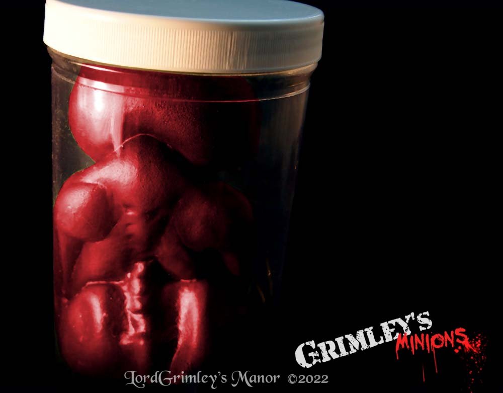 This is a high quality foam-filled and hand-painted latex prop and has many possibilities. Stuff him and mount him on your mantel. Just leave him locked away in his jar for all of eternity. Or better yet, flood his jar with a liquid of your choice for better preservation. (see note)