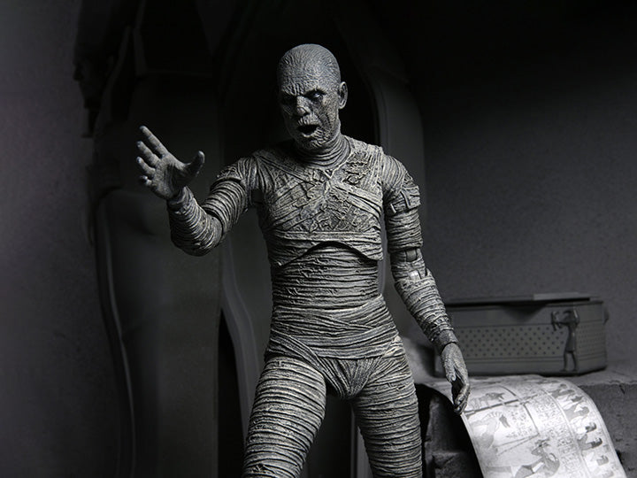 For the 90th anniversary of the extraordinary silver-screen classic, NECA presents The Mummy action figure in authentic black-and-white!
