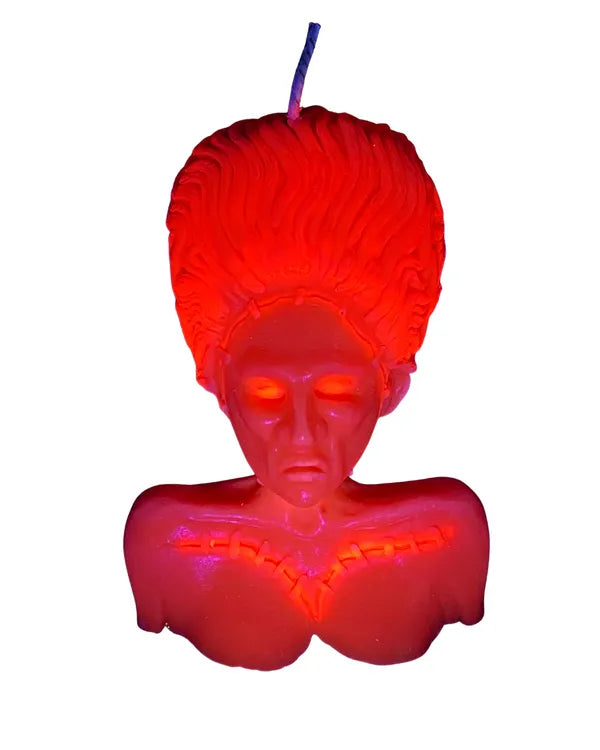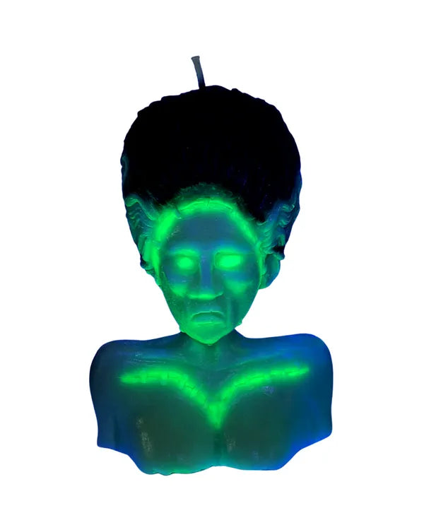 This candle of the legendary Bride of Frankenstein will give you all the creepy vibes! Perfect for the Halloween season, as well as any time of the year!