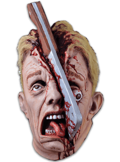 This highly detailed Halloween Mask includes a blood, hair, split flesh, drooping eyes and of course, a meat cleaver through the head.