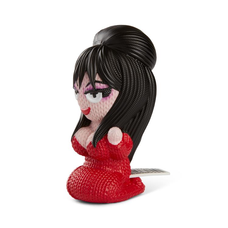 Collect The Elvira Knit-Look Vinyl Figure. The Elvira vinyl figure is designed, molded, and painted to look like a knit toy. The Elvira figure toy measures approximately 5" tall. Complete with barcode decal to replicate a sewn-in label. Brought to you by Handmade by Robots.