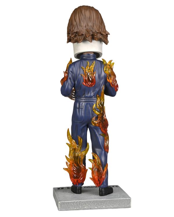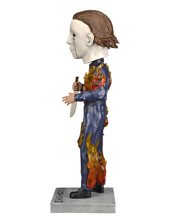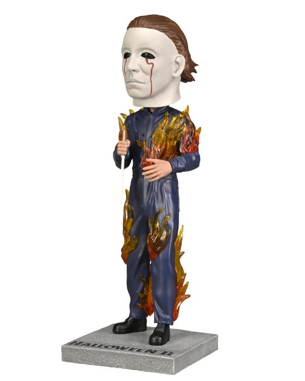 Evil never really dies, as proven in Halloween II, the thrilling 1981 sequel to slasher classic Halloween! While Sheriff Brackett and Dr. Loomis hunt for Michael Myers, a traumatized Laurie is rushed to hospital, and the serial killer is not far behind her. This addition to our popular Head Knocker line brings you Michael Myers on fire, cast in resin and then hand painted for incredible detail. Stands over 8 inches tall with bobbling head and comes in collectible matte packaging with spot gloss finish.
