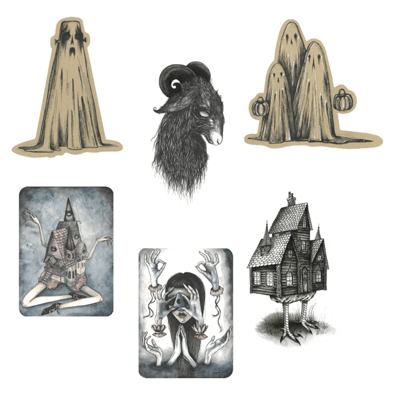 Based on the unique and eerily beautiful artwork of the Little Ghouls, this amazing collection of wall decor comes with six full color wall decor designs.