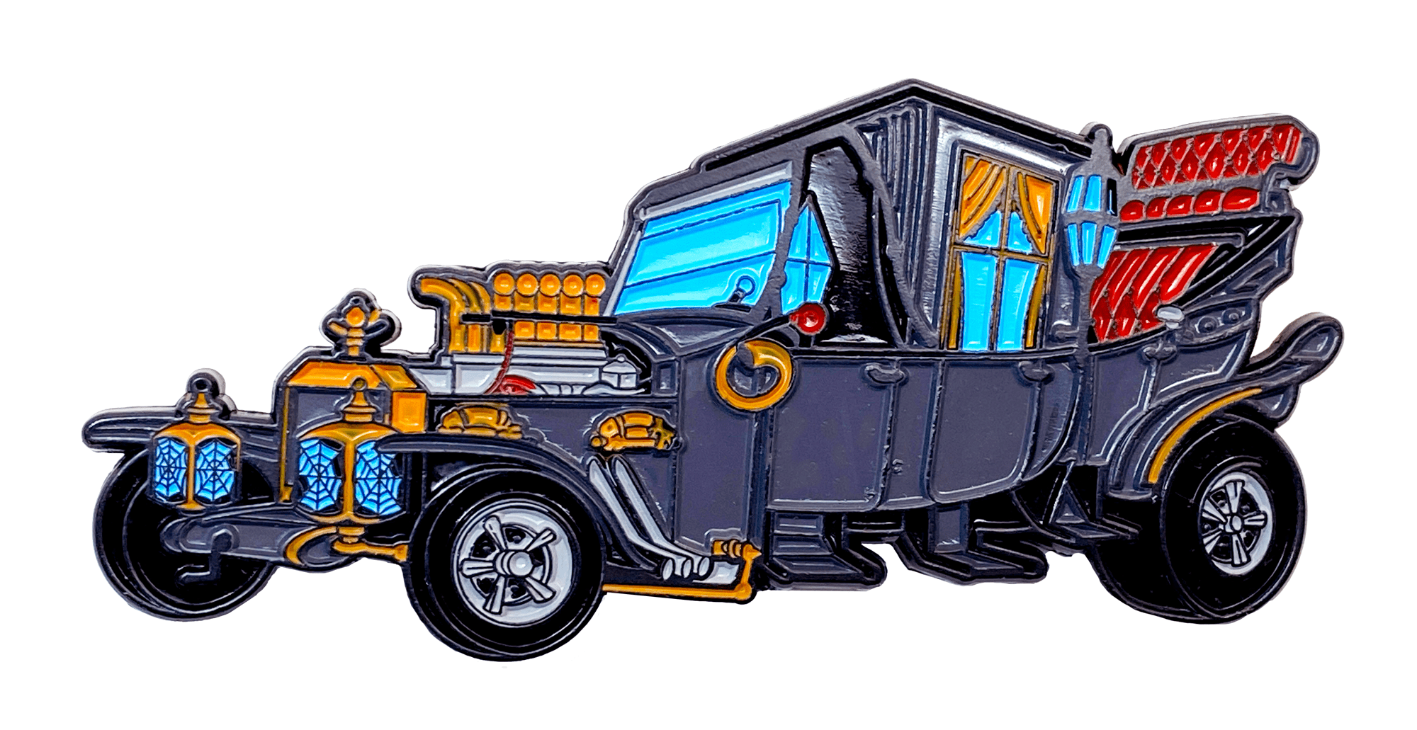 Munsters Koach Enamel Pin with 2 pin butterfly clasp backing.