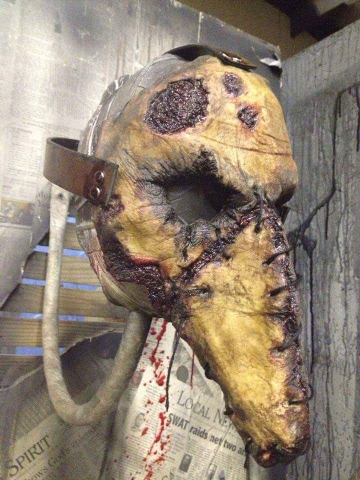 This morbid plague doctor mask looks like it was made out of diseased human flesh and stitched up!