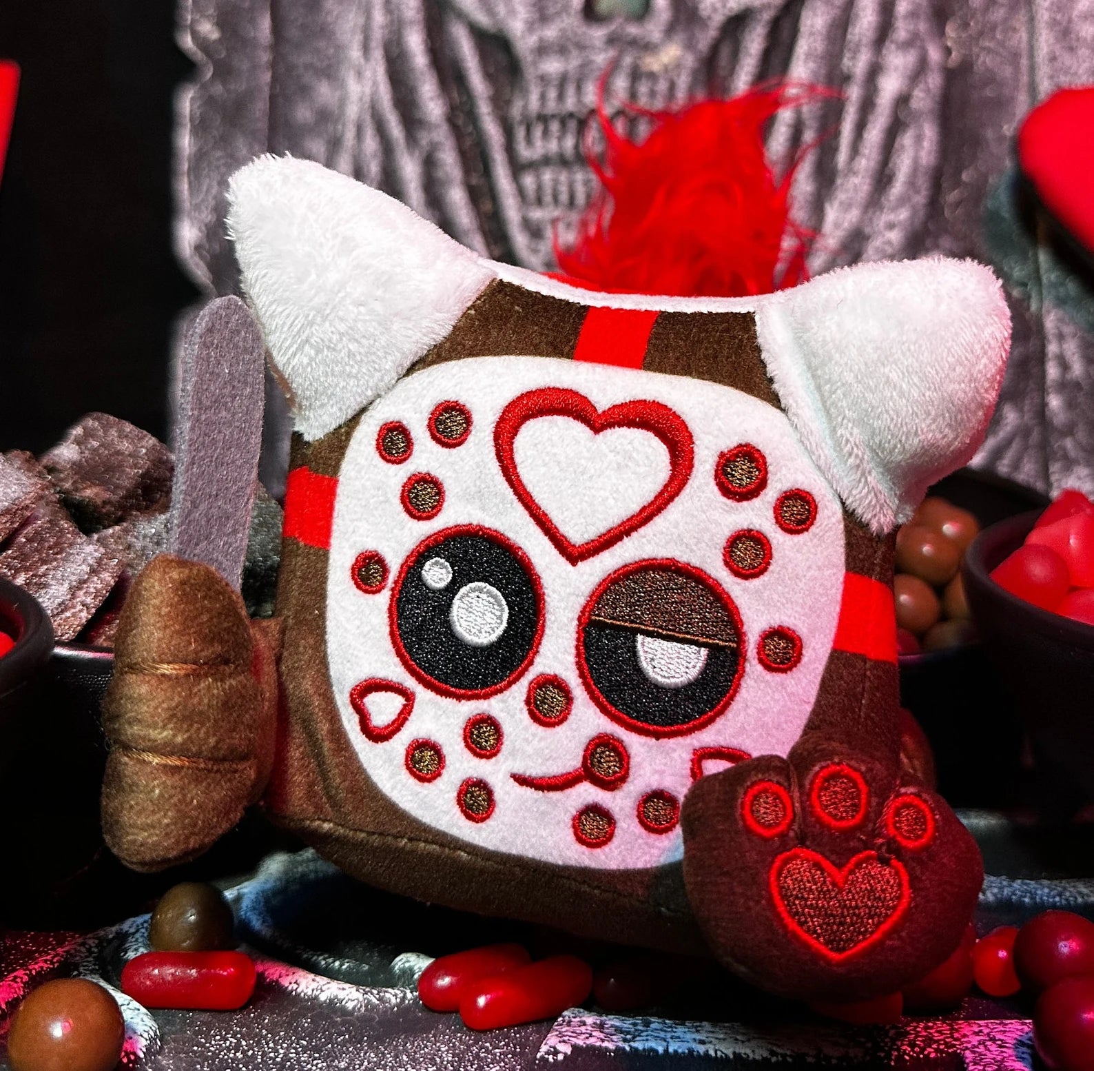 Black Forest Friday is limited to 500. A Black Forest cake slasher holds an icing knife, has cherry filling for a mask strap and is a chocolate cake plushie!