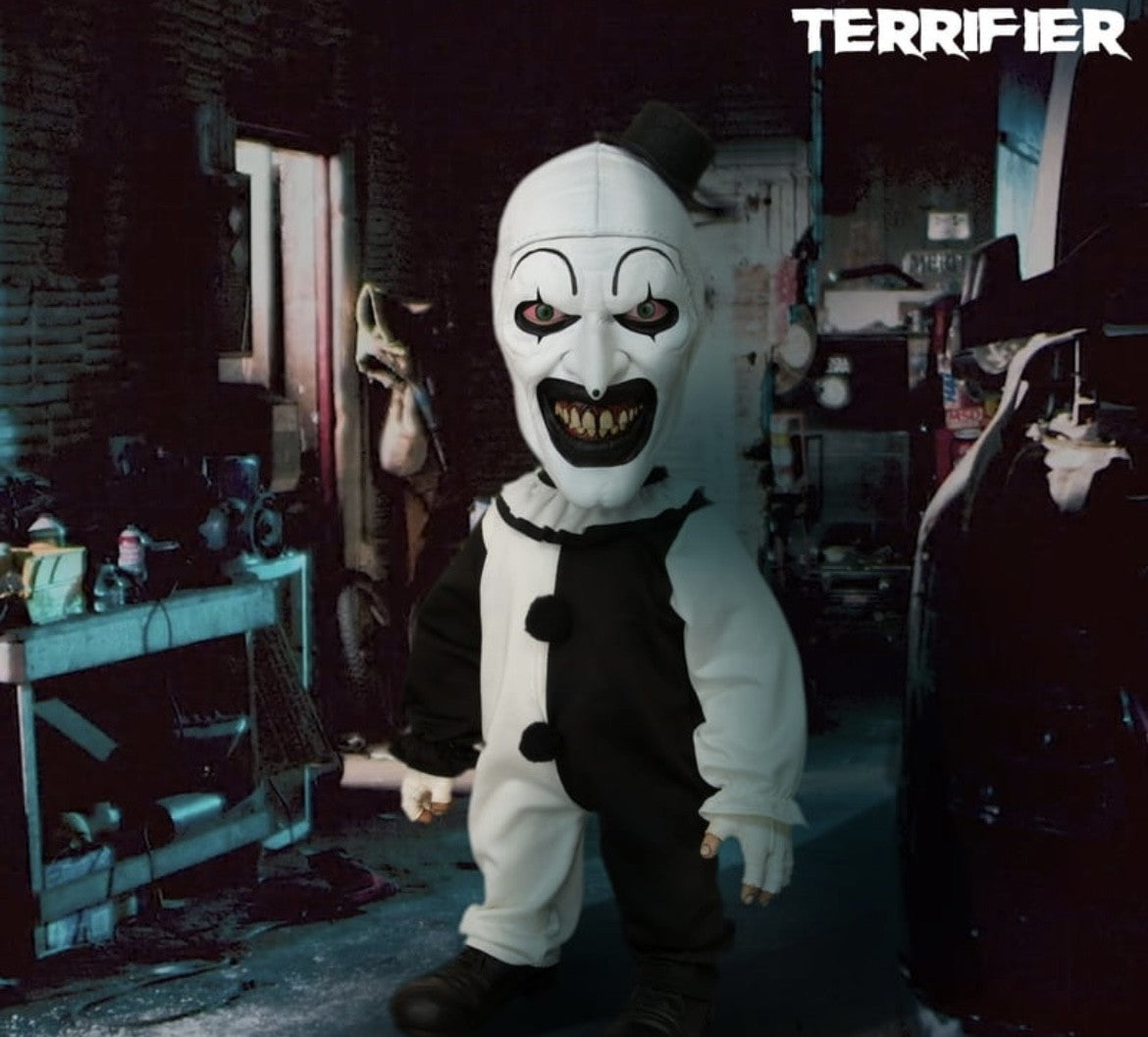 Art features an all-new head sculpt depicting a sinister, spine-chilling, toothy grin. He’s outfitted in his signature black and white clown suit with pom-pom detailing on the front, and ruffles around his wrists and neck. Press the button discreetly hidden on Art’s back to hear some hair-raising sounds!