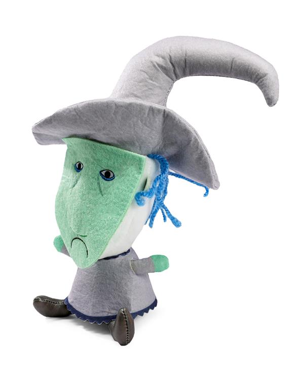Now you can have your own Phunny plush version of Shock the most bewitching of the trio from the beloved film. This Shock plush with yarn hair wears her witch costume complete with hat, shiny shoes, and creepy mask made of felt with embroidered details.