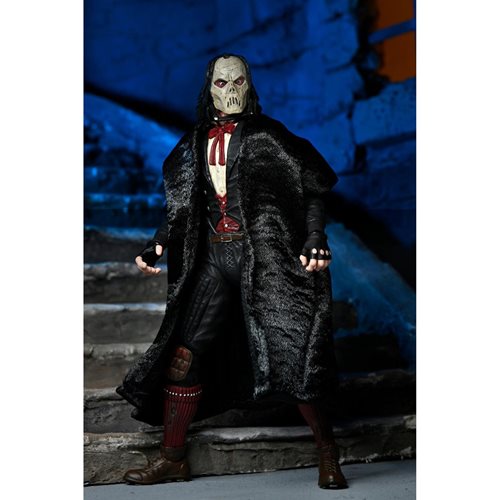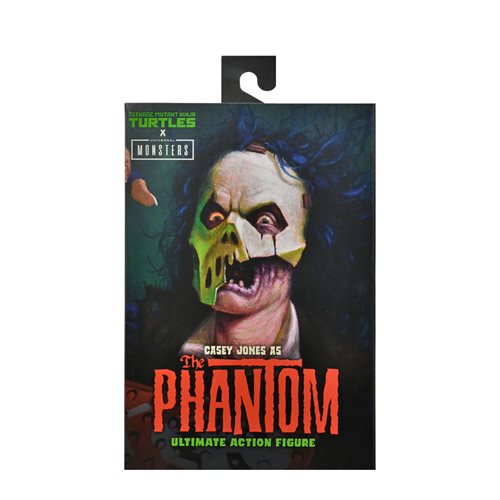 What terror lurks beneath the ice? Experience Fear-atrical frights with NECA’s new Universal Monsters x Teenage Mutant Ninja Turtles action figure starring Casey Jones! This continuing line pays tribute to the world’s most famous turtles and Universal’s icons of horror. Casey Jones as The Phantom reimagines the vigilante as the enigmatic and operatic man behind the mask who haunts the hockey rink! This 7 in scale figure includes removable soft goods cloak, skull, hockey sticks, gloves, and interchangeable heads and hands. Comes in collector-friendly window box packaging with opening flap featuring an all-new illustration by Daniel Horne.